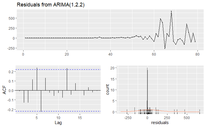 ARIMA(1,2,2) | 969.4 | 7 | 0.052 | No lack of fit |