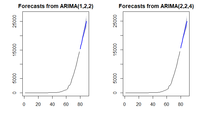 Date | ARIMA(1,2,2) | ARIMA(2,2,4) | Actual | Diff ARIMA(1,2,2) | Diff ARIMA(2,2,4) |